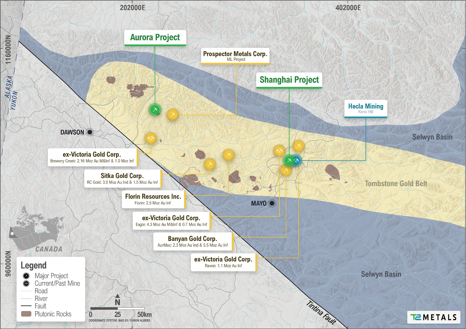 Project partner Shawn Ryan commented “Aurora is one of the highest prospectivity mineral projects I’ve held in the Yukon, and the nearby success of Prospector Metals reinforces its potential. I’m excited to be working with the T2 Metals technical team to see how this project develops.”